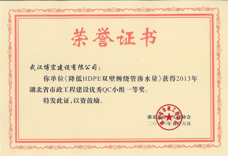 2012年度全國市政工程建設(shè)QC小組活動優(yōu)秀企業(yè)