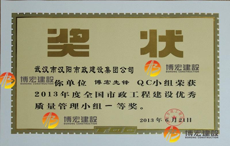 2012年度全國市政工程建設(shè)先進質(zhì)量管理小組