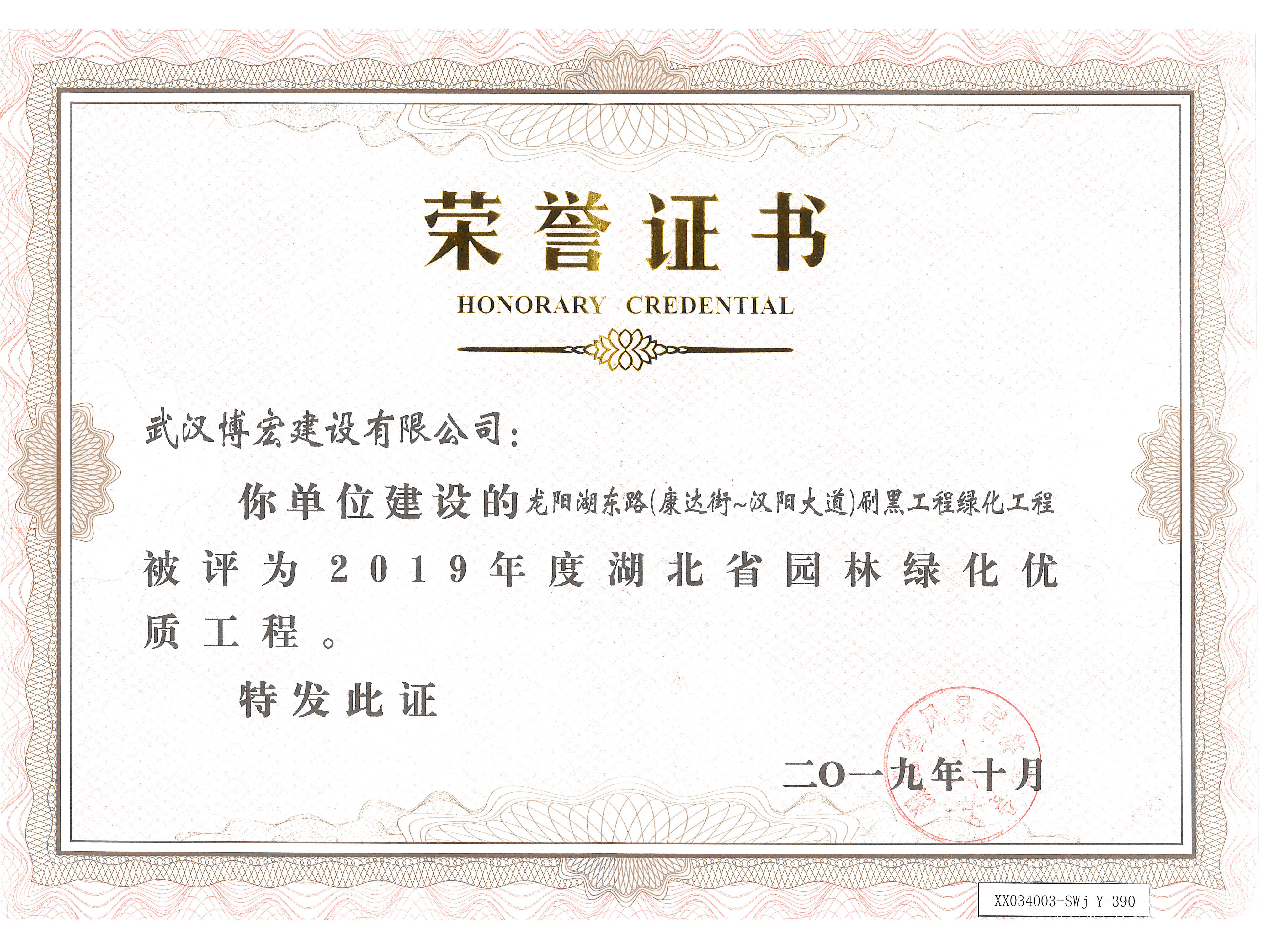 2019年度龍陽東路刷黑工程綠化工程湖北省園林綠化優(yōu)質(zhì)工程
