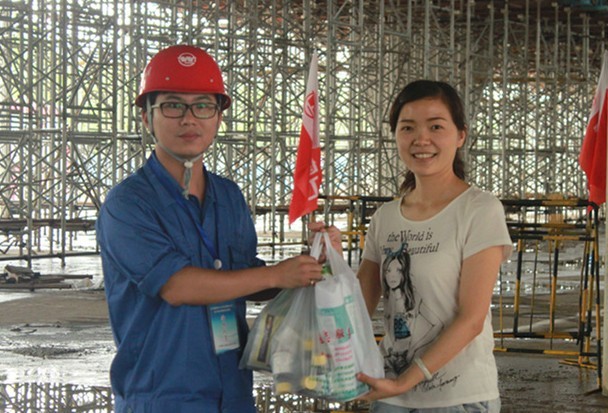 入夏以來,武漢的高溫天氣持續(xù)不下,博宏建設(shè)的職工們?yōu)榱烁黜?xiàng)工程進(jìn)展順利實(shí)施仍堅(jiān)守在施工一線。6月27日,博宏建設(shè)工會主席李俊同志代表公司到各項(xiàng)目部去看望和慰問一線施工人員,為他們送去了防暑降溫藥,讓他們合理安排勞動作息時間,注意安全,避免長時間在高溫下工作。