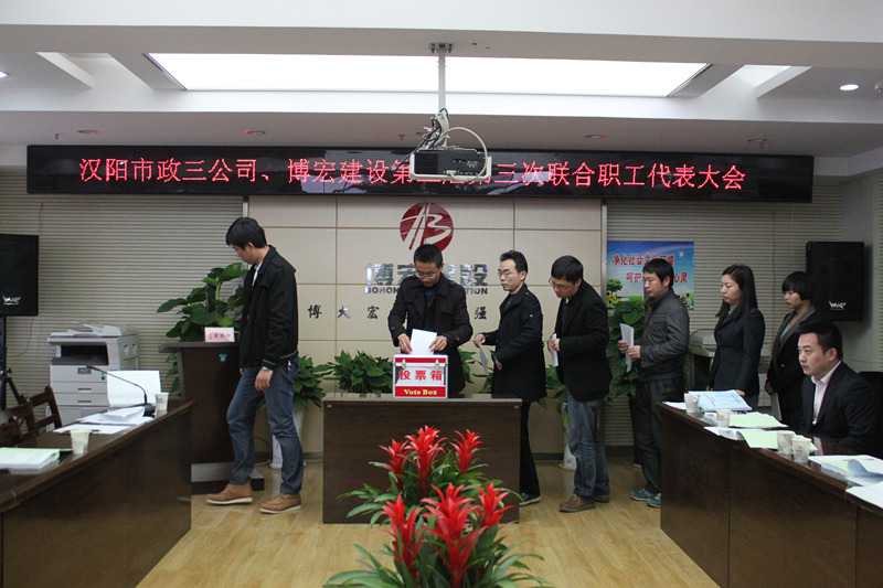 下午1時,伴隨著《國際歌》鏗鏘有力的旋律,武漢博宏建設(shè)有限公司第三屆第三次職工代表大會順利閉幕。