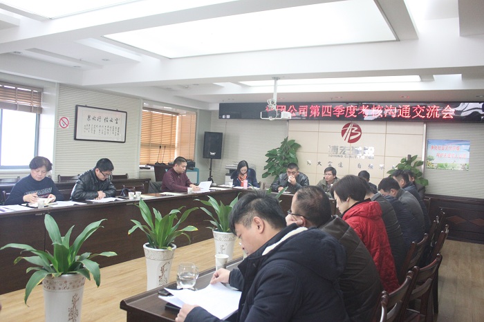 2017年1月2日,迎接新年鐘聲的敲響,集團公司第四季度考核溝通交流會在我公司順利召開,集團總經(jīng)理虞志鵬、黨委副書記陳穎、副總經(jīng)理邢榮斌以及集團各部門負責人蒞臨指導工作。我公司總經(jīng)理錢濤,支部書記周紅,副總經(jīng)理秦林等共58人參加了會議。