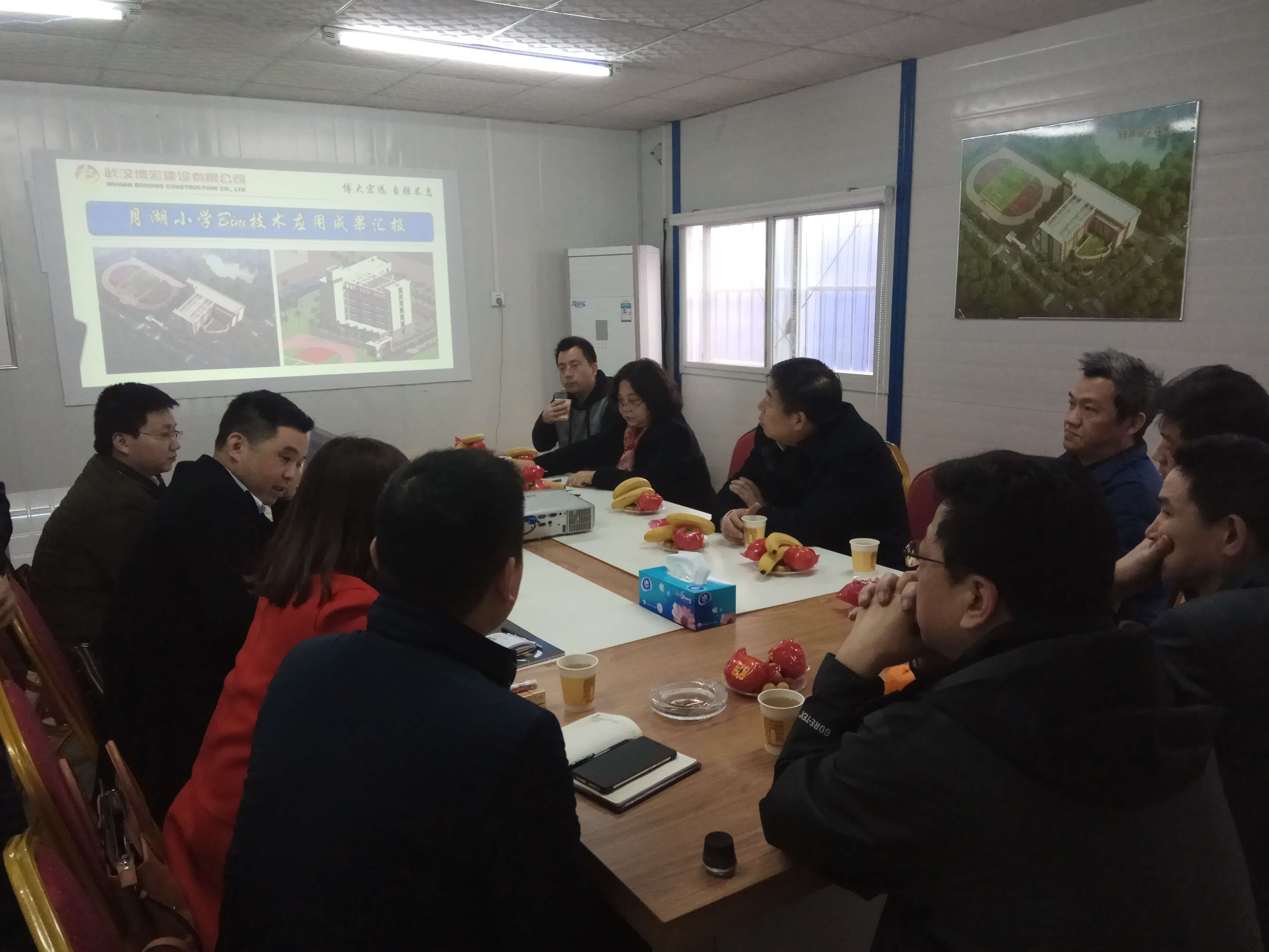 考察交流會議上為加強(qiáng)雙方了解,公司經(jīng)營副總蘇琦首先就公司近年來發(fā)展及資質(zhì)情況進(jìn)行了簡單介紹。接下來公司副總工程師梅浩對BIM技術(shù)在月湖小學(xué)施工建設(shè)中取得的效果進(jìn)行了概述??偣まk文志勇從圖紙審查、碰撞檢查、可視化交底、砌體排磚、進(jìn)度質(zhì)量安全管理、施工模擬等多個方面一一介紹BIM技術(shù)為月湖小學(xué)工程建設(shè)帶來的成果及效益,總結(jié)了BIM技術(shù)應(yīng)用經(jīng)驗(yàn),并簡單介紹了下一步BIM應(yīng)用計劃安排。