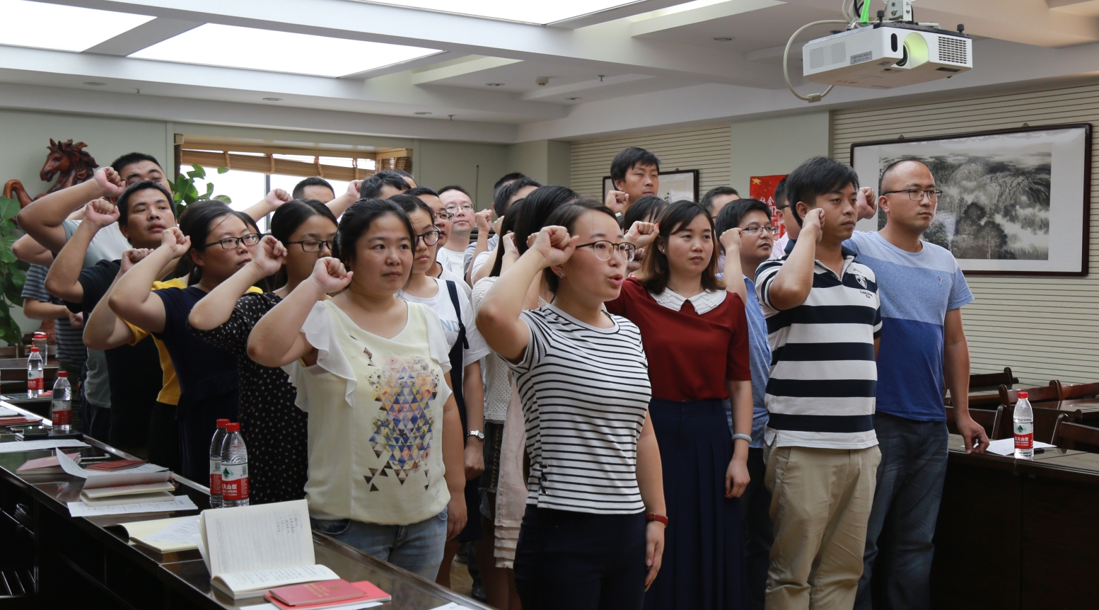為迎接黨的十九大順利召開,8月15日,漢陽市政三公司八月支部主題黨日活動在公司會議室拉開帷幕,活動以“學(xué)習(xí)‘7.26’習(xí)近平總書記重要講話精神,迎接黨的十九大”為主題,全體黨員齊唱國歌、重溫入黨誓詞、看黨章讀黨規(guī)、學(xué)系列講話······活動環(huán)節(jié)豐富,內(nèi)容充實。