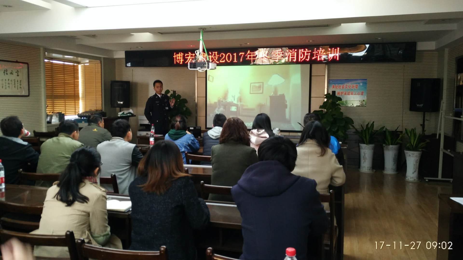 博宏建設2017年開展冬季消防培訓。武漢的冬季,天干物燥,正是一年中最容易發(fā)生火災事故的時間段,為提高職工消防意識及防范技能,來自省消防宣教中心的帥氣教官周老師為大家上了一堂生動的消防安全課,公司各項目部及職能部門皆派出代表參加培訓。