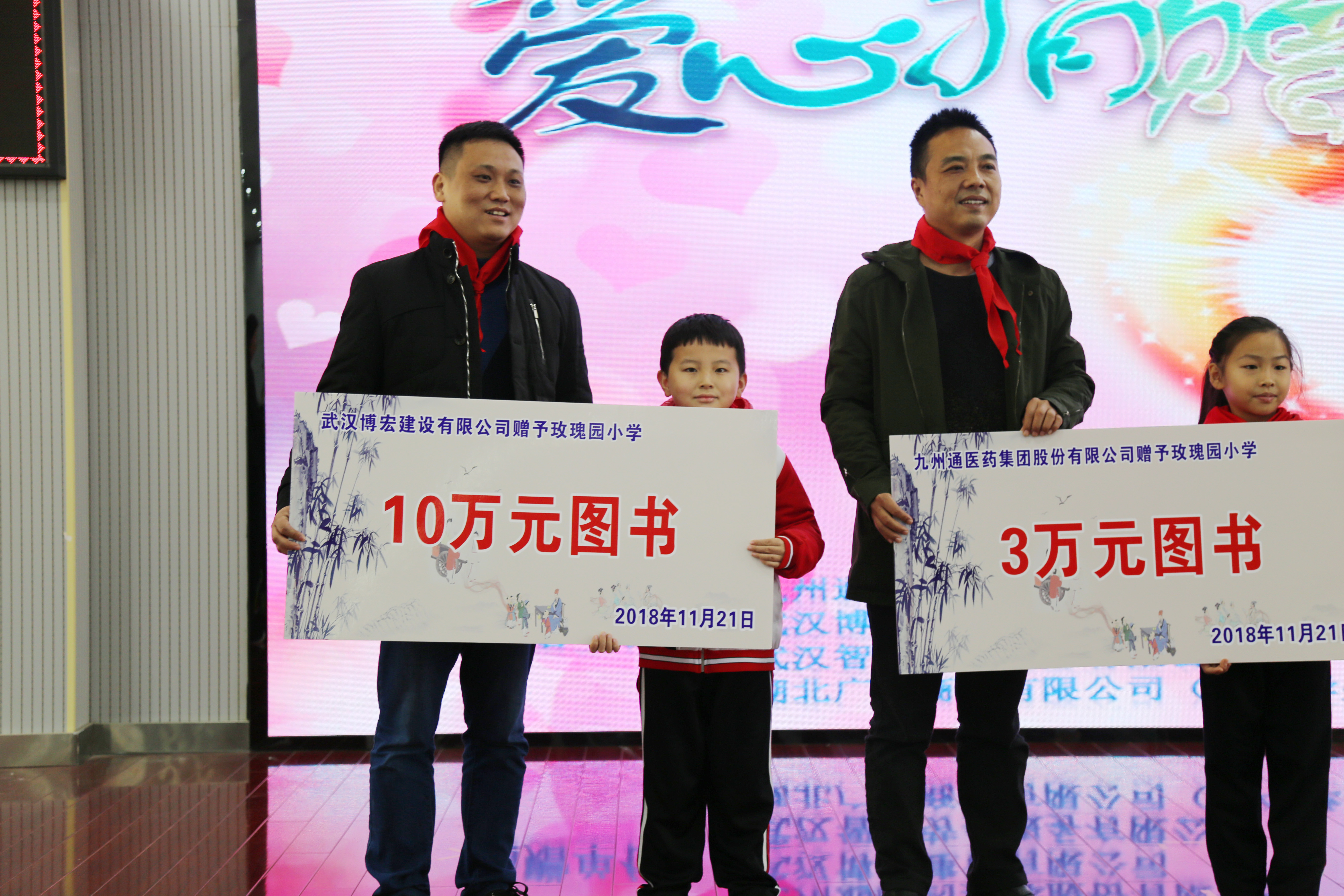 “愛心捐贈,助力前行”,11月21日上午,漢陽區(qū)玫瑰園小學(xué)芳草校區(qū)圖書捐贈儀式在該校報告廳舉行,漢陽區(qū)工商聯(lián)副主席張蓮莉,區(qū)教育局副局長李兵,區(qū)房管站副站長陳衛(wèi)琴、魏慧民,玫瑰園小學(xué)校長黃智玲,武漢博宏建設(shè)有限公司黨支部副書記郭一清、副總經(jīng)理蘇琦,武漢智誠勞務(wù)服務(wù)有限公司總經(jīng)理劉春濤以及九州通醫(yī)藥集團(tuán)股份有限公司、湖北廣惠商貿(mào)有限公司等單位代表出席捐贈儀式。為助力推進(jìn)漢陽區(qū)教育事業(yè),豐富學(xué)校圖書庫存,博宏建設(shè)現(xiàn)場為該校捐獻(xiàn)了價值10萬元的圖書。