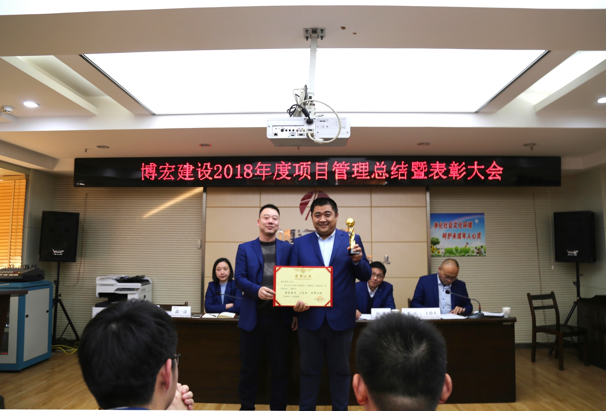 在隨后的表彰環(huán)節(jié)中,公司支部副書記郭一清宣讀了對年度“十佳員工”的表彰決定,辛桂華、周昌文、梅博文、高晟、盧劍、高詩琪、鄭娟、楊俊偉、李凱等優(yōu)秀員工伴隨激昂的音樂走上前臺,公司領(lǐng)導班子成員為其頒獎并合影留念。副總經(jīng)理奚雷宣讀了對年度優(yōu)秀項目的表彰決定,其中“英才中學”項目榮獲公司第二屆“工匠杯”獎,該項目建設團隊也是第二次獲得公司項目管理最高榮譽,成功實現(xiàn)衛(wèi)冕;此外,“正信花園”及“鸚鵡洲小學”項目分別榮獲年度“優(yōu)秀項目”稱號。