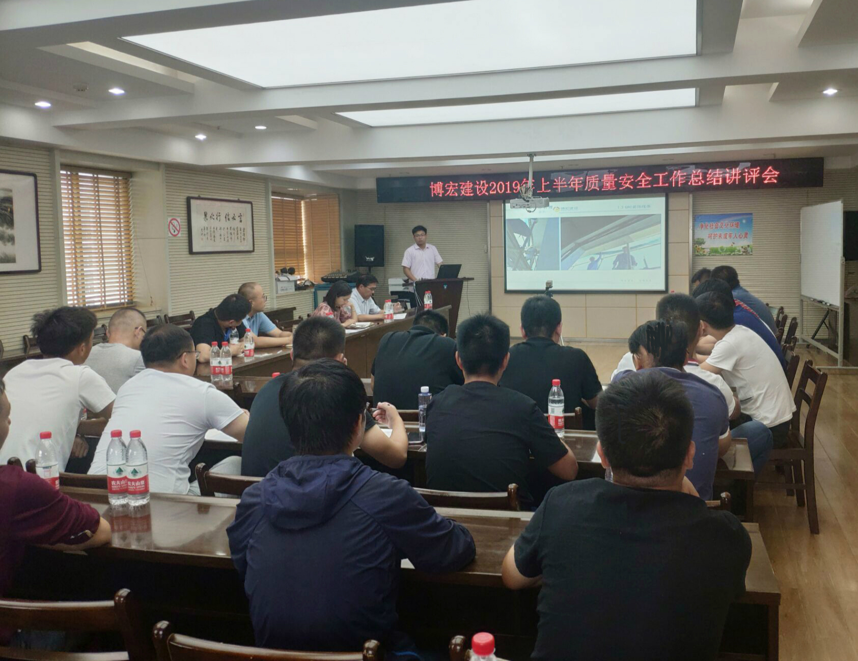 2019年7月4日,博宏建設(shè)上半年質(zhì)量安全總結(jié)講評大會在公司大會議室召開。