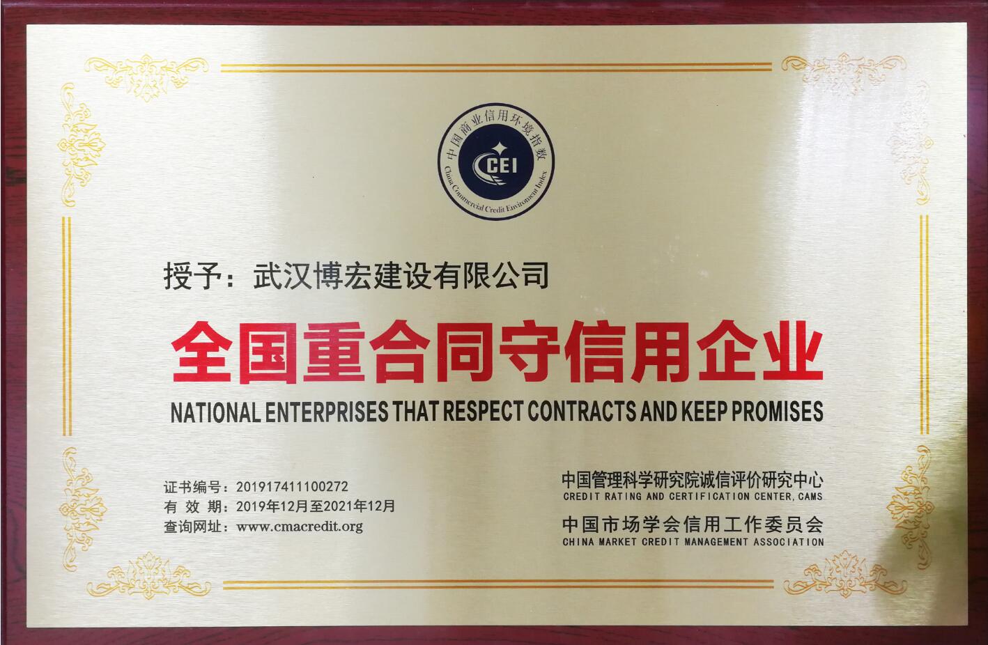 ???? 近日,博宏建設(shè)被中國管理科學(xué)研究誠信評(píng)價(jià)研究中心、中國市場學(xué)會(huì)信用工作委員會(huì)共同評(píng)為“全國重合同守信用企業(yè)”,以表彰公司在嚴(yán)格按照合同內(nèi)容來實(shí)施、執(zhí)行項(xiàng)目建設(shè)和公司管理方面的誠信行為。