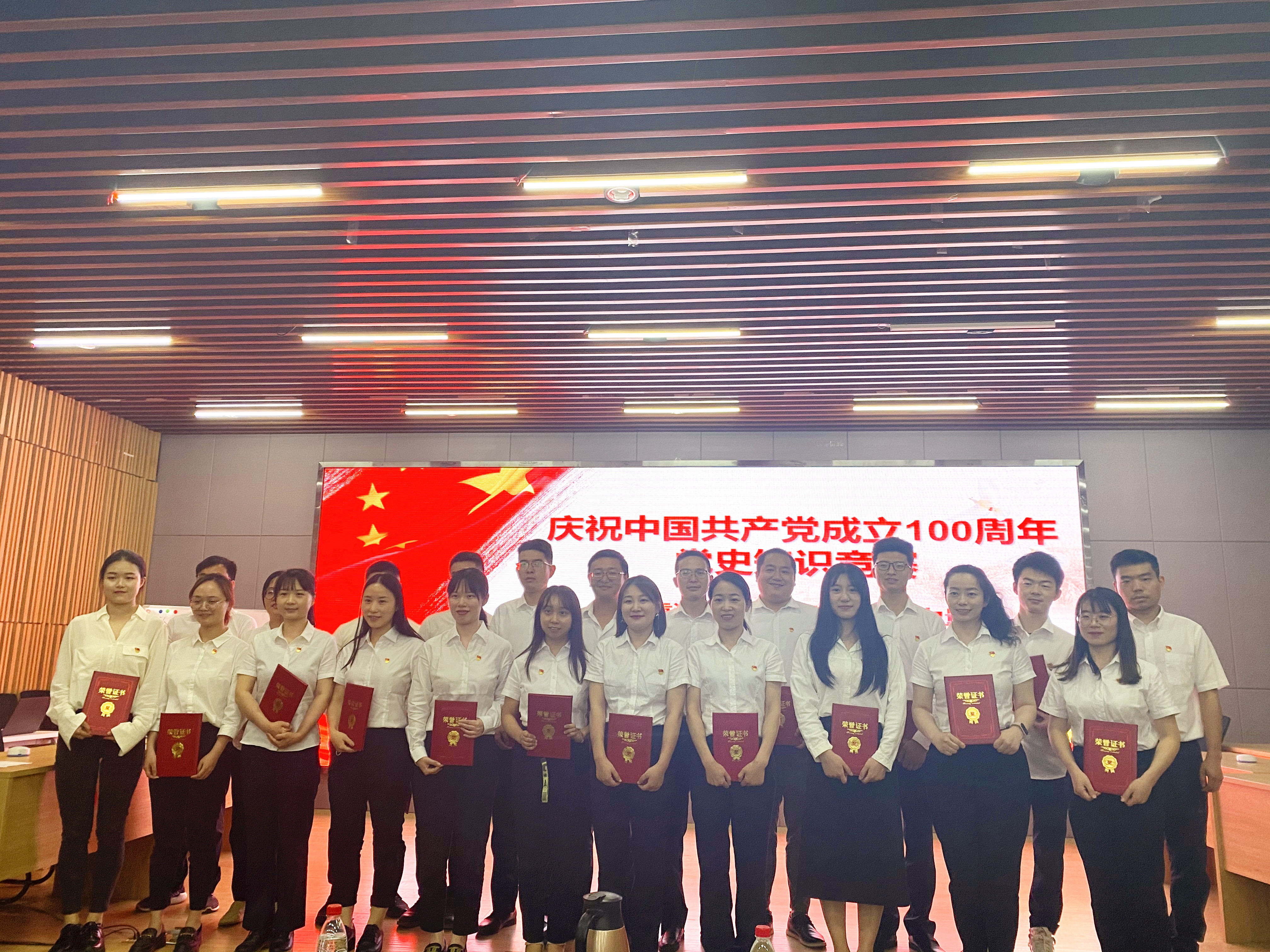 6月3日下午2:30,漢陽市政“慶祝中國共產(chǎn)黨成立100周年”黨史知識(shí)競(jìng)賽活動(dòng)順利舉行,由公司項(xiàng)目一線職工羅柯、范秋怡組成的博宏代表隊(duì)通過激烈角逐,在此次比賽中榮獲第一名!