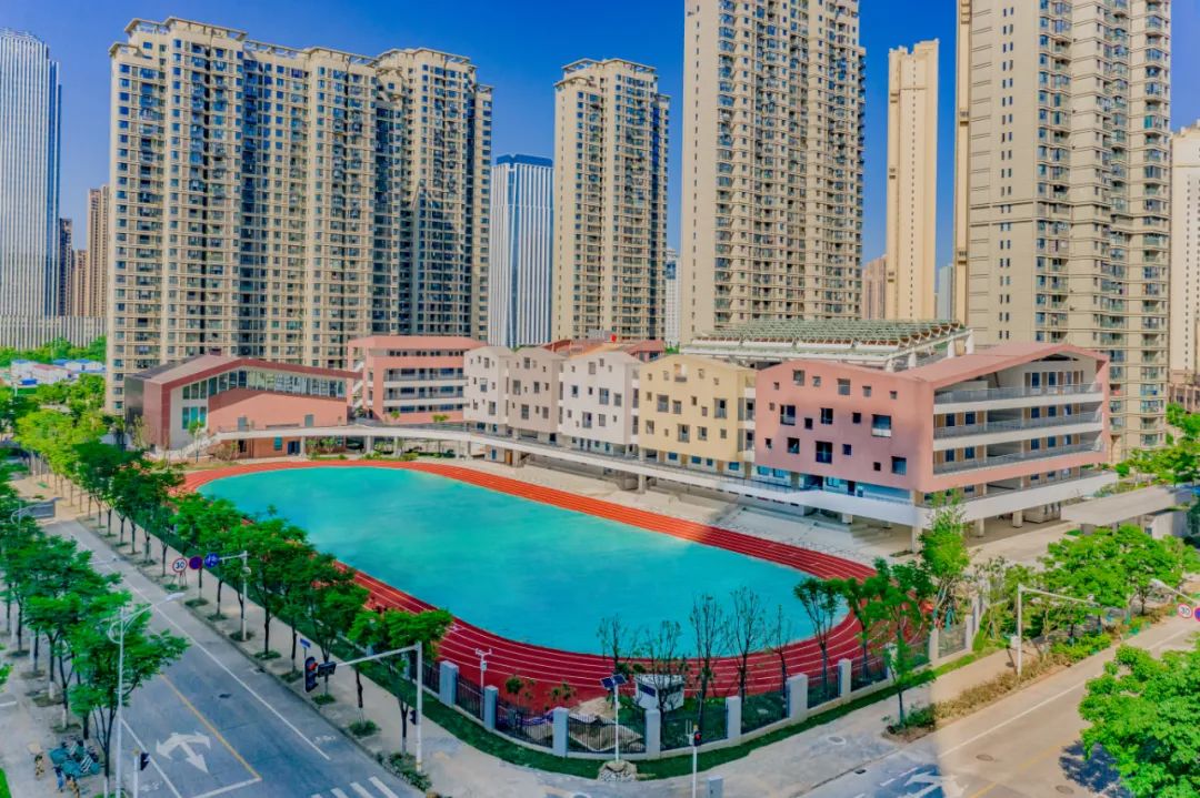 國博三小位于武漢市漢陽區(qū)梅子南街以北,梅子?xùn)|路以東,項目總用地面積為 17387.90 ㎡,總建筑面積為 34829㎡。國博三小將線性外廊立面體塊化,分段鏤空的洞口式設(shè)計使學(xué)校造型充滿童話色彩,通過開敞平臺、首層架空、互動中庭、連廊平臺、下沉庭院、屋頂空間等設(shè)計手段,營造出多樣化的校園空間。