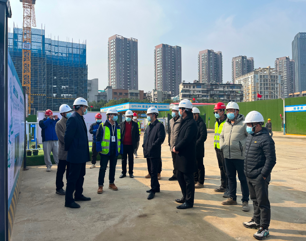 12月7日,湖北省建設(shè)科技與建筑節(jié)能辦公室主任董文斌、宜昌市建筑市場和建設(shè)工程質(zhì)量安全監(jiān)督站站長王梁、宜昌市建筑節(jié)能推廣中心黨支部書記、主任章鴻一行蒞臨天創(chuàng)覽江府項目現(xiàn)場考察調(diào)研,博宏建設(shè)集團副總經(jīng)理周昌文陪同調(diào)研。