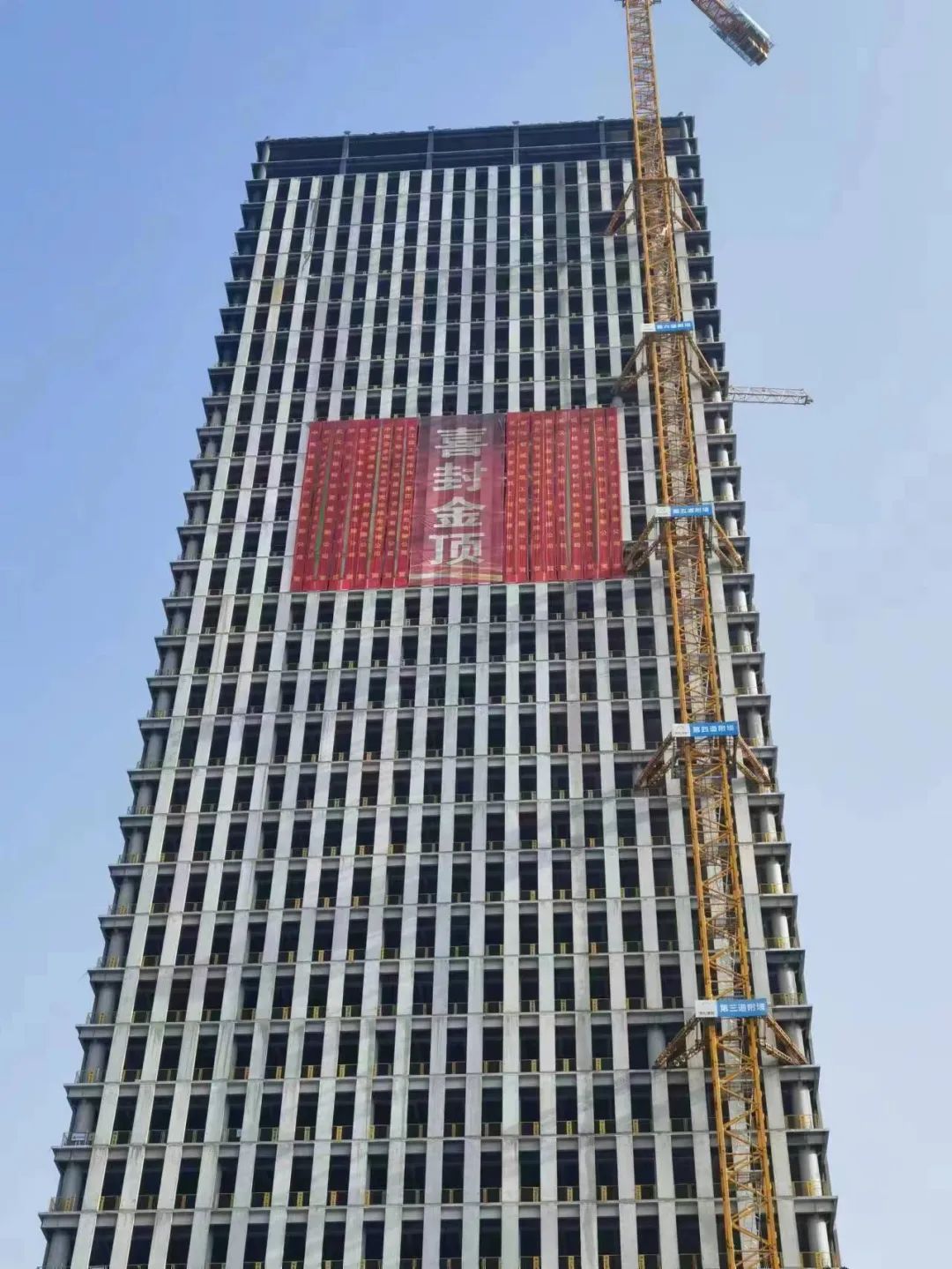 該項目于2020年6月9日正式開工,2021年5月12日工程樁施工完成,2021年7月24日主樓底板進(jìn)行大體積混凝土澆筑,2022年4月30日地下室全部實現(xiàn)結(jié)構(gòu)封頂,2022年9月完成副樓封頂,2023年1月18日迎來主樓主體結(jié)構(gòu)封頂,項目進(jìn)度節(jié)點節(jié)節(jié)攀升!建設(shè)過程中面對工程地質(zhì)條件差、工程體量大、結(jié)構(gòu)復(fù)雜等諸多技術(shù)難題及疫情的考驗,項目建設(shè)團(tuán)隊高度重視、密切配合、通力協(xié)作,克服了人員管控難度大、材料設(shè)備進(jìn)場難以及因疫情放開導(dǎo)致的管理人員相繼感染病毒等重重困難,在春節(jié)前順利實現(xiàn)了本次主樓封頂。