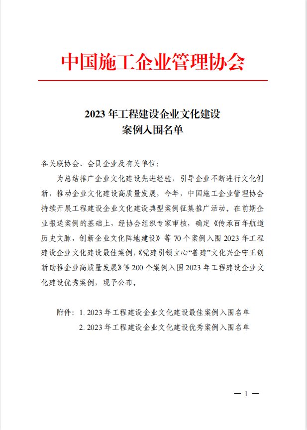 近日,中國施工管理企業(yè)協(xié)會發(fā)布2023年全國工程建設(shè)企業(yè)文化建設(shè)最佳案例、優(yōu)秀案例,由博宏建設(shè)集團申報的《文化賦能顯動力 創(chuàng)新融合促發(fā)展》獲評“企業(yè)文化建設(shè)優(yōu)秀案例”。