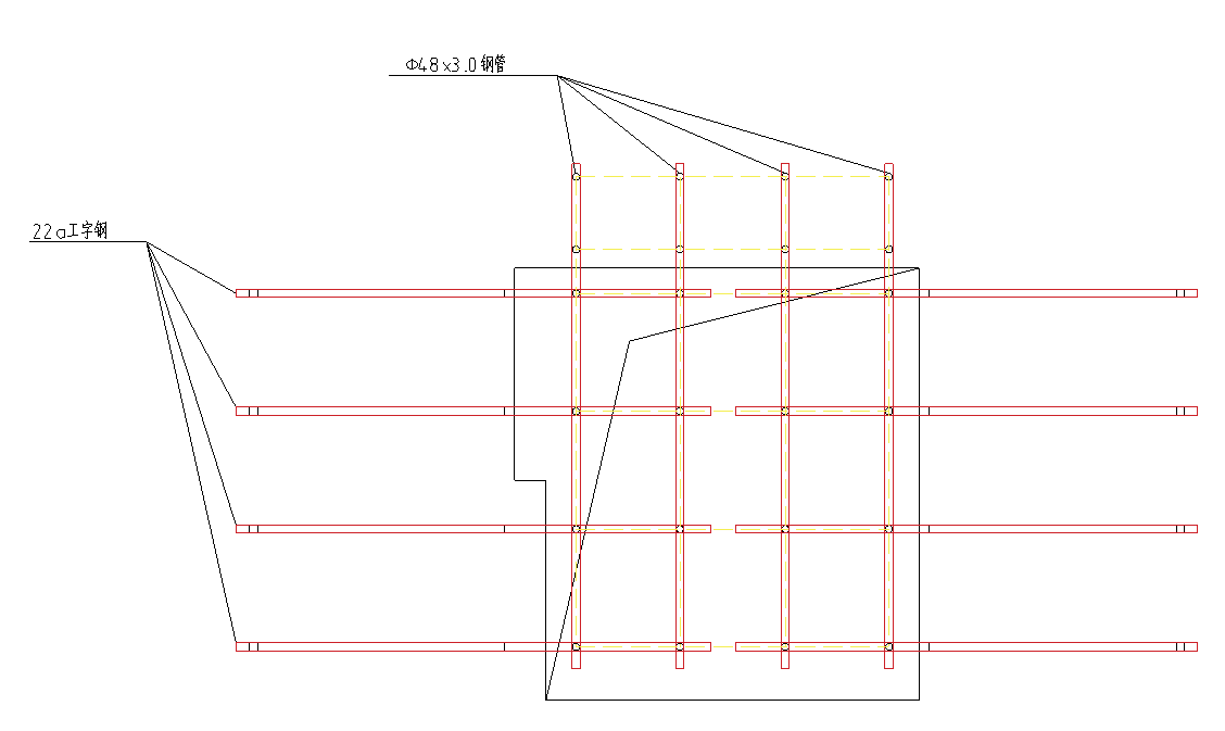 該技術(shù)通過采用兩道16#工字鋼懸挑(一道布置在屋面層,一道布置在屋面層-2層),分別設(shè)置下?lián)渭吧侠姆绞酱钤O(shè)支撐平臺(tái),再利用此平臺(tái)為基礎(chǔ)搭設(shè)支撐架和外腳手架,既用于結(jié)構(gòu)施工,同時(shí)兼作安全防護(hù),有效降低了操作人員的安全風(fēng)險(xiǎn),對(duì)結(jié)構(gòu)安全性有較大保障。
