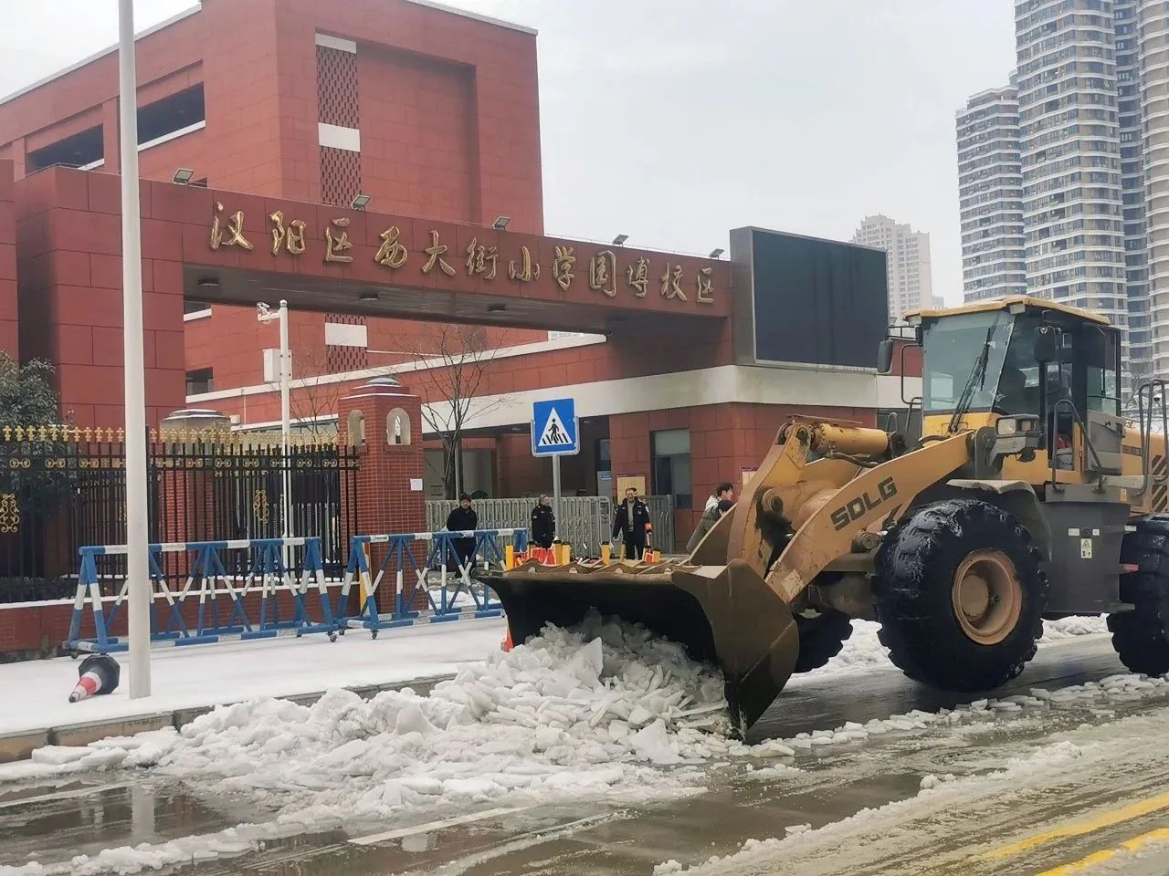 本次應(yīng)急行動(dòng)累計(jì)出動(dòng)61人次,鏟車14臺(tái),巡查車輛7臺(tái),撒鹽車輛3臺(tái),撒融雪劑0.5噸,共對(duì)五里墩小學(xué)、翠微中學(xué)、七里小學(xué)、武漢市第三中學(xué)、西大街至誠(chéng)小學(xué)、墨水湖小學(xué)東校區(qū)等八所學(xué)校道路的積雪進(jìn)行了清理,并鏟除路面結(jié)冰。