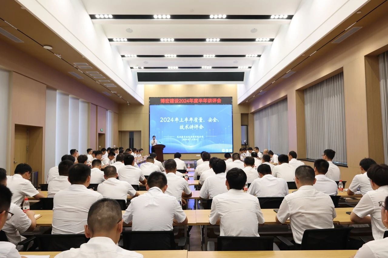 為切實提升項目管理水平,認(rèn)真梳理項目現(xiàn)場優(yōu)秀做法,找準(zhǔn)短板問題,明確后續(xù)工作重點要求。7月26日下午,博宏建設(shè)集團(tuán)2024年上半年質(zhì)量、安全、技術(shù)講評會在公司31樓會議室召開。公司黨委班子、總助、部門負(fù)責(zé)人、項目經(jīng)理、技術(shù)崗、質(zhì)檢崗、安全崗、施工崗共計74人參加會議。會議由總工辦彭迎主持。