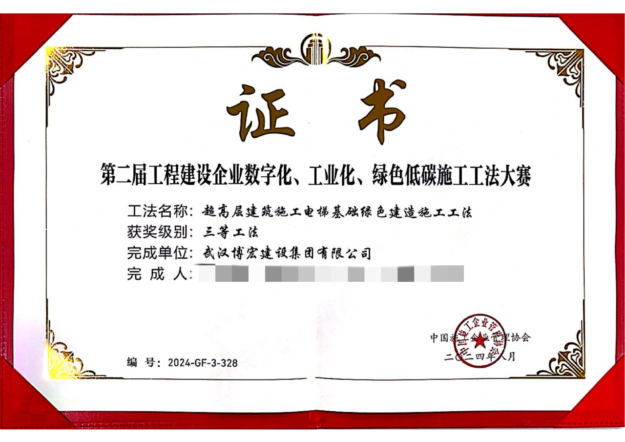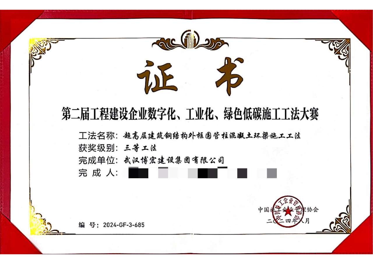 近日,中國施工企業(yè)管理協(xié)會公布第二屆工程建設(shè)企業(yè)數(shù)字化、工業(yè)化、綠色低碳施工工法大賽、第四屆工程建造微創(chuàng)新技術(shù)大賽結(jié)果,博宏建設(shè)集團(tuán)喜獲2項三等工法、1項優(yōu)勝成果。